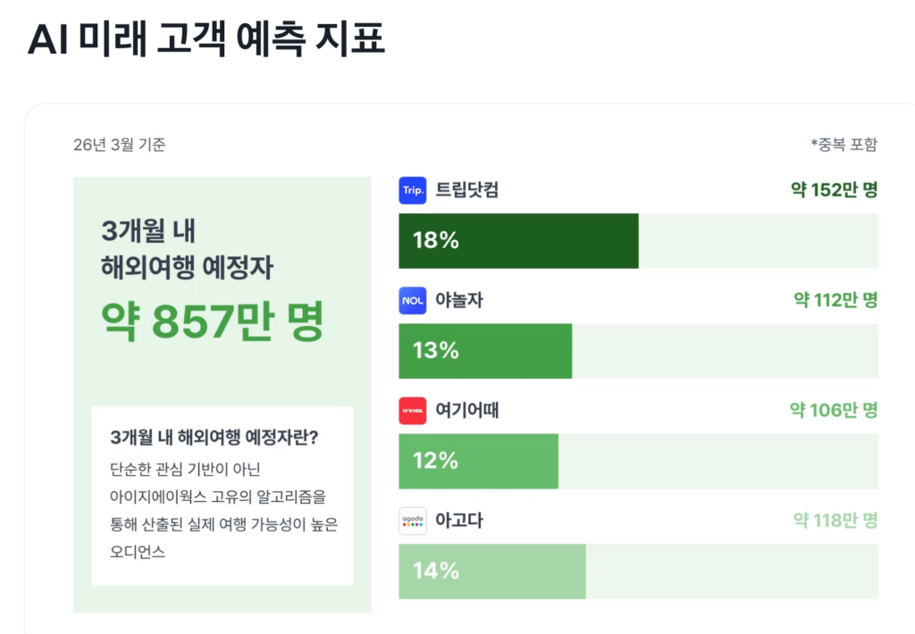 아이지에이웍스가 발표한 2026년 4월 ‘Data-Forecast 여행 업종’ 리포트에 따르면, 국내 여행 플랫폼 시장은 신규 유입이 정체된 가운데 기존 유저를 지키기 위한 극심한 점유율 전쟁에 돌입했습니다.