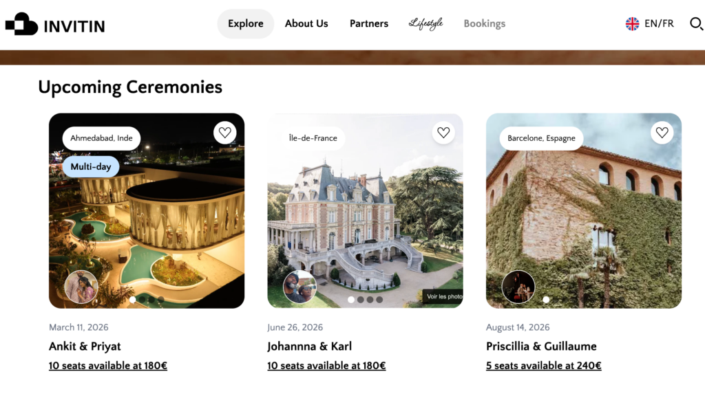 그런데 이러한 웨딩 투어리즘은 인도만의 현상이 아닙니다. 2025년 초 설립된 프랑스 스타트업 앙비땅(Invitin, 인비틴)의 사례는 이 비즈니스 모델의 글로벌 확장 가능성을 보여줍니다.